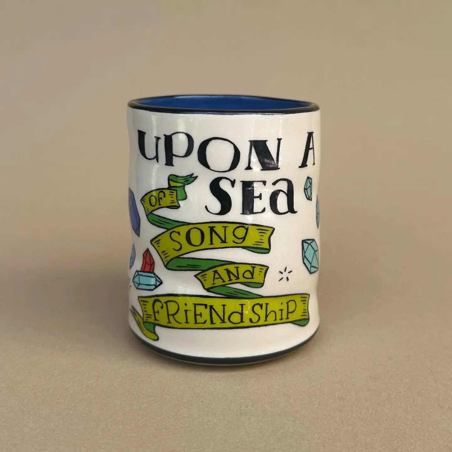 This cup is dedicated to our friends. To their comfort and support, to their listening and responding and loving. The sea of friendship is infinite, and upon it we travel through life with a better map, a stronger wind, and a warm, cozy galley. We raise our cups to the friendships we treasure, be them a lifetime long, or recently discovered. We love you and hum along to the tune that is us. – Upon A Sea Spark Cup – Size: Large (9 fl. oz.) – Dishwasher Safe – Measures 2″ tall and 2.5″ diameter. – Art on all sides. – Comfortable to hold with a unique thumb divot.
